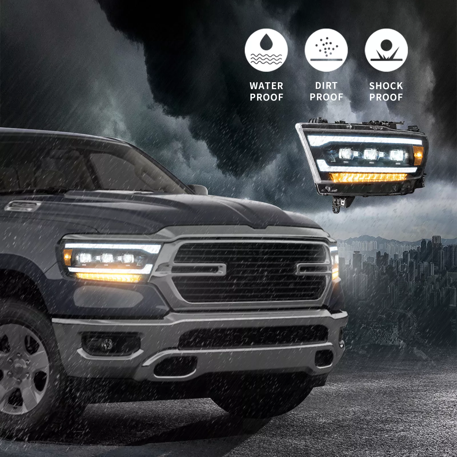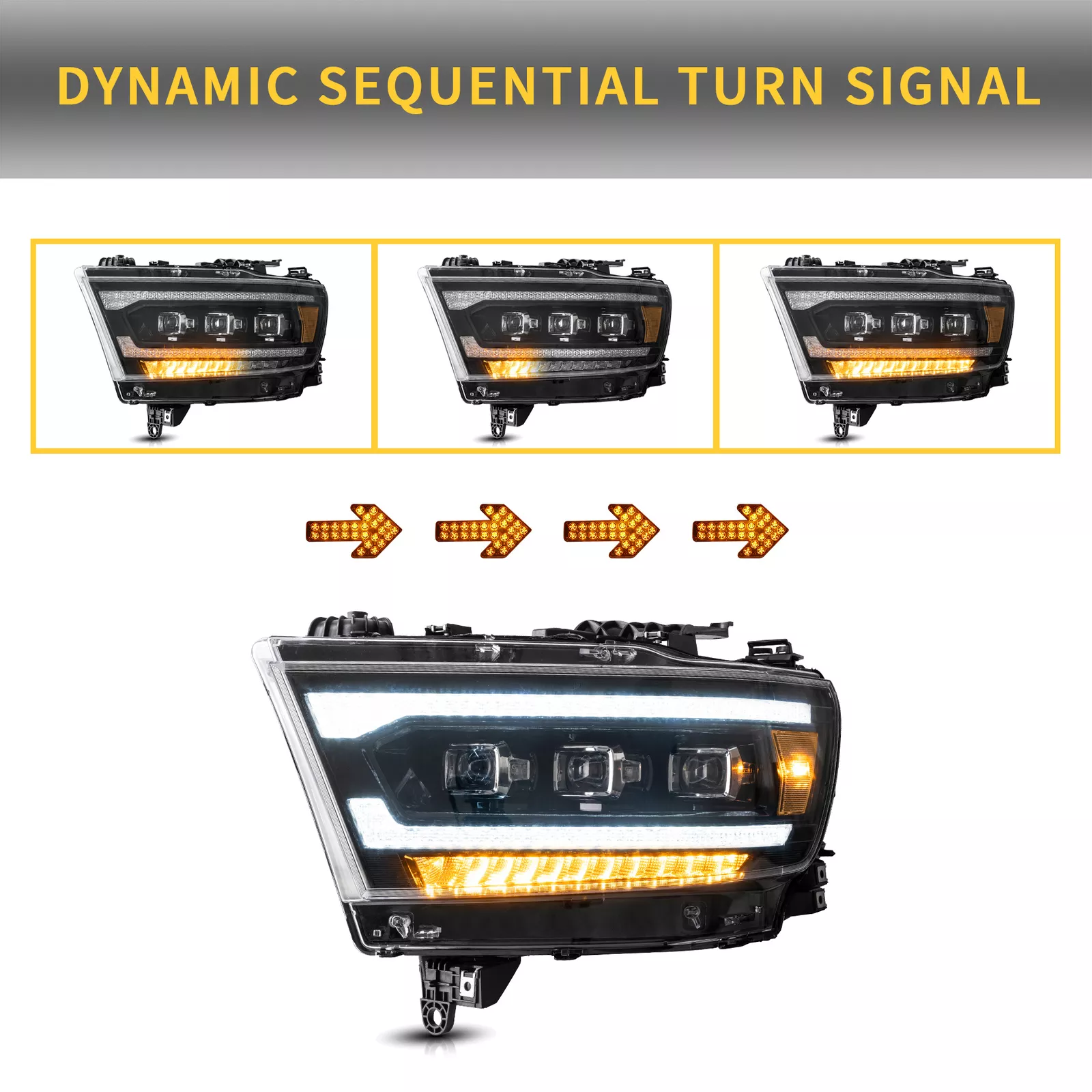 VLAND FULL LED Matrix Projektor-Scheinwerfer für RAM 1500 der 5. Generation 2019-2024. Sie wurden als perfekter Ersatz für Ihre OEM-Scheinwerfer entwickelt und ersetzen im Plug-and-Play Verfahren die Werksscheinwerfer.